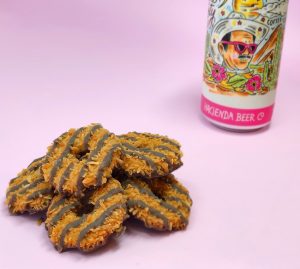 First up the beloved and drool wrothy Carmel De-Lites. We matched the toasted coconut of these cookies with even more toasted coconut and the roasted caramel flavors in Hacienda’s Brew. Hacienda’s The Only Time is Party Time, milk stout with brewed with cold brew coffee and toasted coconut is the perfect partner in crime for this tasty morsel of a cookie.
